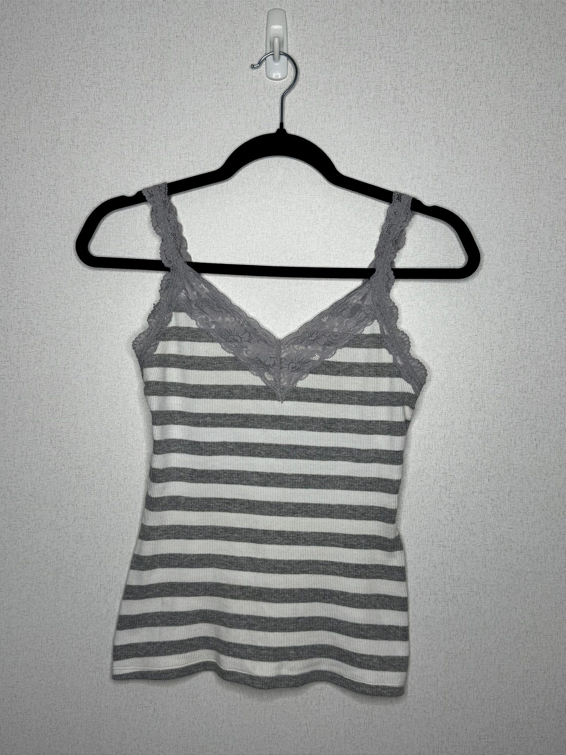 A blusa cinza listrada Essenza tamanho P é perfeita para quem busca conforto aliado ao estilo casual. Com tecido macio e modelagem ajustada, oferece caimento ideal para o dia a dia, valorizando o corpo com elegância discreta. As listras em tons de cinza proporcionam um visual moderno, enquanto os detalhes em renda nas alças adicionam um toque delicado e diferenciado. Ideal para compor looks versáteis, esta blusa é ótima para usar com jeans, saias ou shorts em diversas ocasiões.